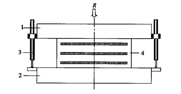 1一上承載板;2-下承載板;3一位移傳感器;4 支座試樣